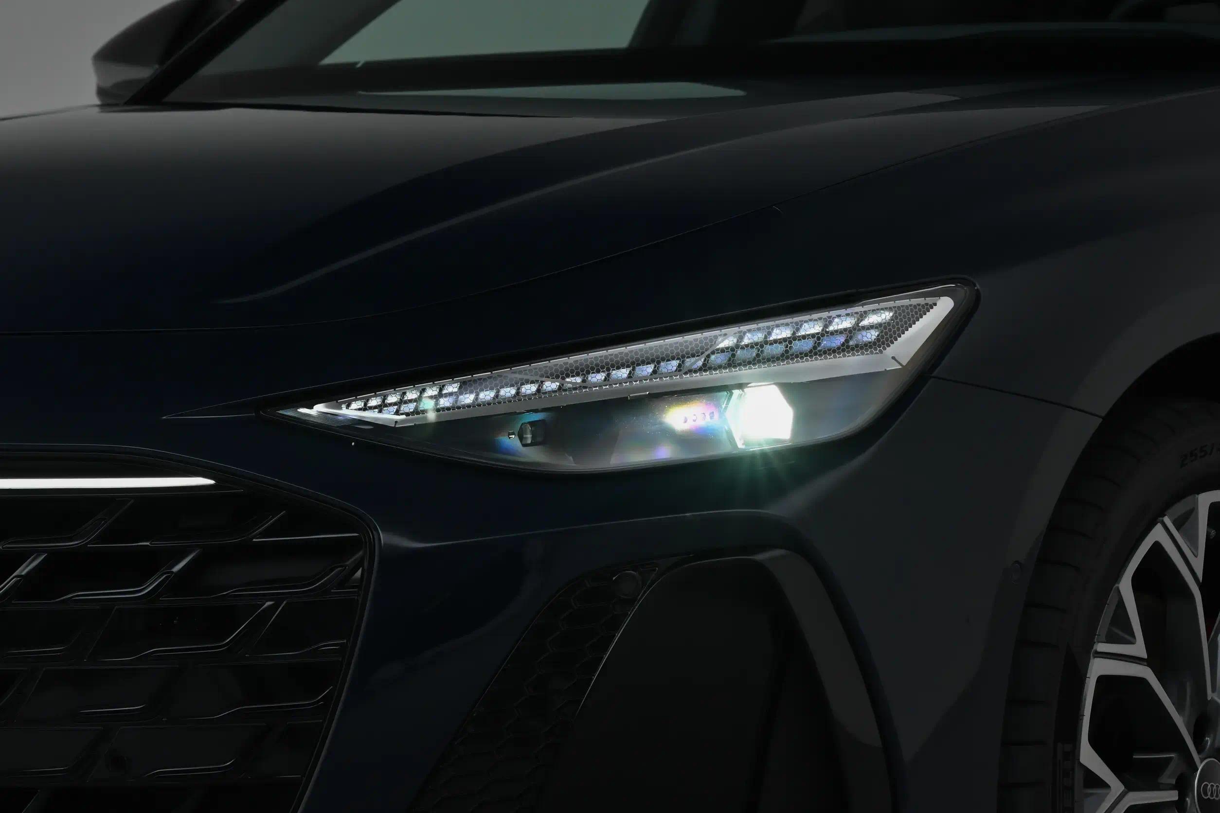 此外,两侧导流槽会根据格栅样式同步调整造型,搭配外凸的前唇设计,进一步强化了车辆的运动属性。值得一提的是,中高配车型将两颗激光雷达巧妙地隐藏于导流槽内。灯组部分,新车配备星辰矩阵LED大灯,支持多种个性化数字灯光模式切换。