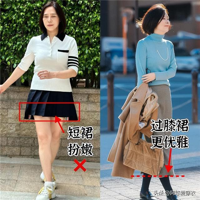 春夏季节来临,大家都开始穿上了裙子,但为什么中年女人不适合穿短裙呢?先从风格来说吧,上年纪的女人都变得成熟稳重了,穿短裙会显得有些不得体,尤其是这种膝上的短款百褶裙,更适合年轻的少女,上年纪的女人穿会有一种扮嫩的既视感,而长裙看起来就优雅多了,更能凸显成熟稳重的气场哦。