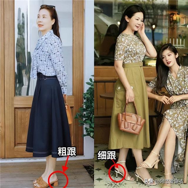 tips1:中年女人穿带跟鞋,重点在于鞋跟的挑选