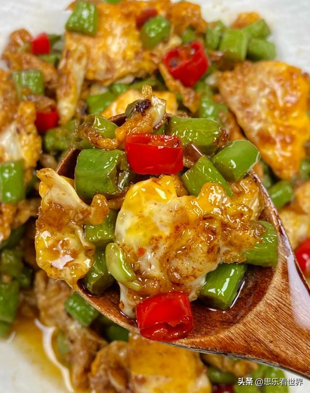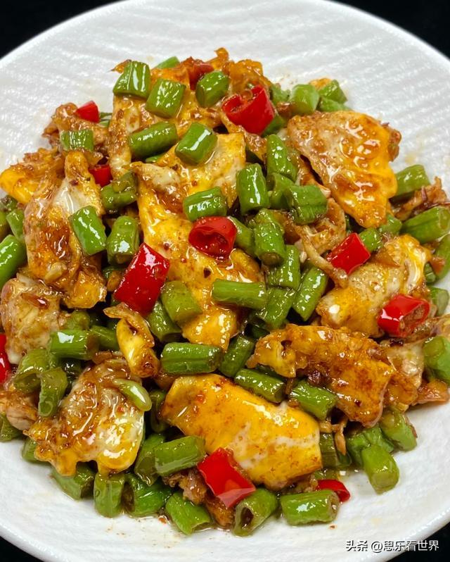 豆角脆嫩、鸡蛋蓬松,不用复杂调料,家常味最是治愈。
